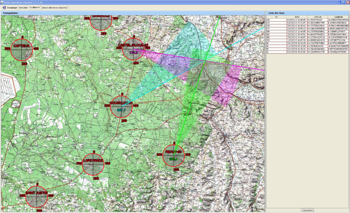Supressão: Se apenas uma torre tiver detectado o fumo, é utilizada a distância indicada na telemetria. Se pelo menos duas torres tiverem detectado o fumo, o centro de controlo utilizará a triangulação para confirmar a localização do incidente.